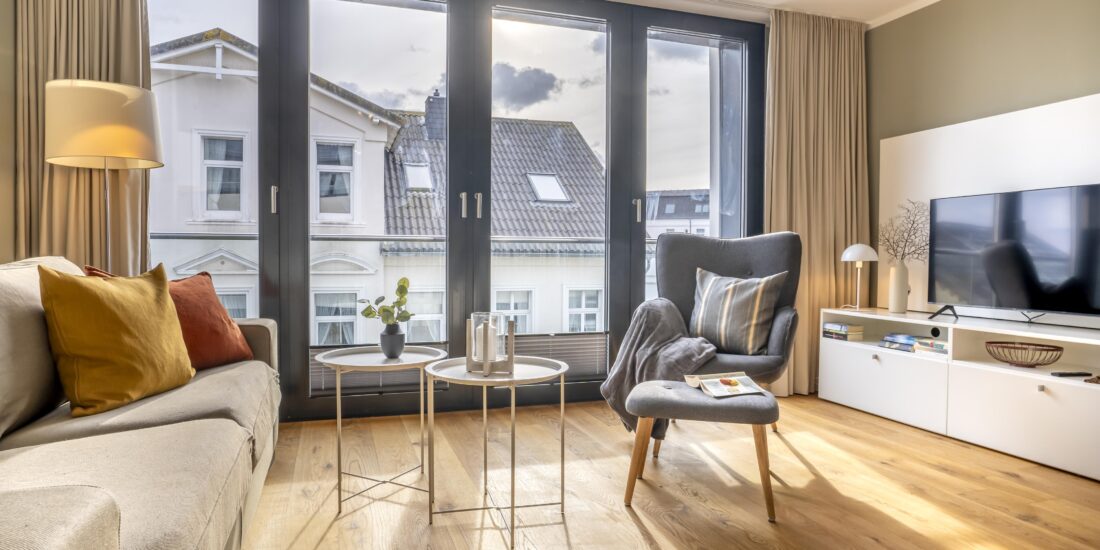 Im Herzen von Borkum erwartet Sie das InselLoft 5, eine hochwertig und stilvoll gestaltete Ferienwohnung, die über zwei Etagen hinweg keinen Wunsch offen lässt. Direkt am Georg-Schütte-Platz, vis-à-vis des Bahnhofs gelegen, erstreckt sich dieses Loft vom 2. Obergeschoss bis in das Dachgeschoss, wo der Wohn-/Essbereich unten und die Schlafzimmer sowie der Balkon oben zu finden sind. Der offene Grundriss sorgt für ein lichtdurchflutetes Wohnambiente und der Süd-West-Balkon bietet einen atemberaubenden Blick über die Dächer Borkums bis zur Nordsee.