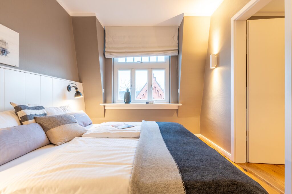 Das Appartement 11 Plus (mit Kochgelegenheit) ist für zwei Personen und verfügt über ein separates Schlafzimmer mit einem 180cm breiten Doppelbett und einen Wohn-/Essbereich mit einer umfangreich ausgestatteten Küche. Die Besonderheit des denkmalgeschützten Gebäudes ist – neben den hochwertig und modern ausgestatteten Appartements – der großzügige Allgemeinbereich. So lädt die Lounge mit gemütlichen Lesesesseln zum Verweilen ein. In der großen, voll ausgestatteten, modernen Küche können alle Gäste des Hauses kochen und entweder im angrenzenden Essbereich oder auf der dazu gehörigen Gemeinschaftsterrasse in gepflegter Atmosphäre speisen und den Tag ausklingen lassen. Die Mitnahme von Haustieren ist hier nicht gestattet, sodass die Wohnung auch von Allergikern gerne gebucht werden kann. Eine Waschmaschine und ein Wäschetrockner, jeweils mit einem Münzautomat, stehen für die Allgemeinheit zur Verfügung.