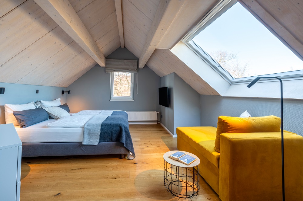 Die Ferienwohnung 2 im K20 erstreckt sich über zwei Etagen und verfügt über drei separate Schlafzimmer, wovon zwei einen direkten Zugang zu einem eigenen Badezimmer mit Dusche und WC haben. Das Schlafzimmer im Dachgeschoss hat neben einem tollen Blick in die Wiesen auch eine eigene Badewanne. Darüber hinaus befindet sich in diesem Schlafzimmer noch ein Schlafsofa (mit einer Liegefläche von 1,96 m x 0,77 m) und bietet somit eine Schlafmöglichkeit für eine 7. Person. Alle drei Schlafzimmer verfügen über einen Flachbildfernseher. Der Balkon hat eine Süd-West-Ausrichtung. Die Besonderheiten der Unterkunft sind der funktionale Zuschnitt, die eigene Sauna, drei vollausgestattete Bäder und der Gaskamin im Wohnzimmer für gemütliche Stunden im Winter. Die hochwertig ausgestattete Küchenzeile verfügt neben allen wichtigen Utensilien zum Kochen über einen Geschirrspüler, eine Nespresso-Kapselmaschine und einen Backofen. Zudem besteht im Keller die Möglichkeit kostenfrei zu waschen und zu trocknen. Ebenso gibt es im Keller mehrere Spielmöglichkeiten für unsere kleinen Gäste. Ein Parkplatz ist ebenfalls kostenfrei im Angebot enthalten. Die Mitnahme von Haustieren ist hier nicht gestattet, sodass die Wohnung auch von Allergikern gerne gebucht werden kann.
